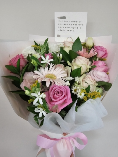 분홍장미계절꽃다발