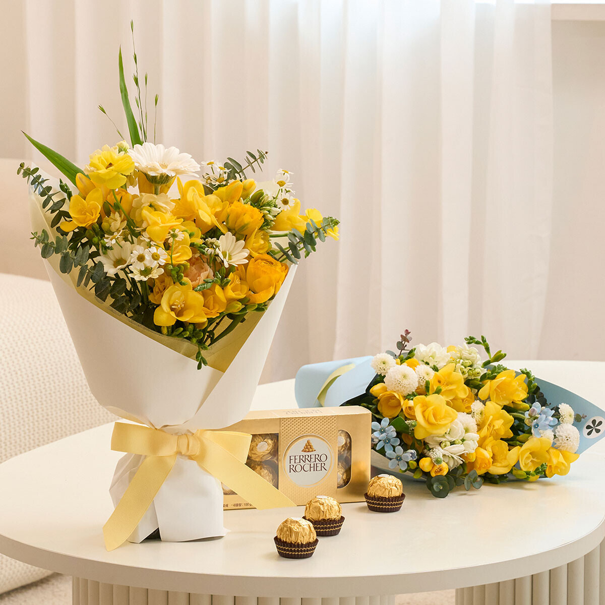 프리지아 시즌 꽃다발+페레로로쉐 8구