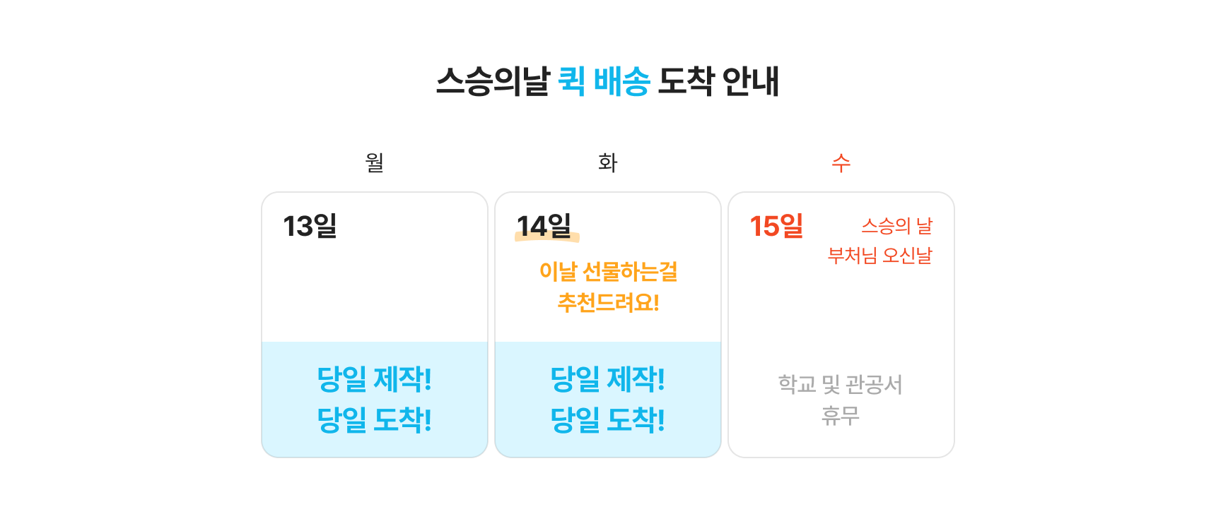 15일 (스승의 날)도착일이 걱정되신다면 퀵 상품을 이용해주세요.