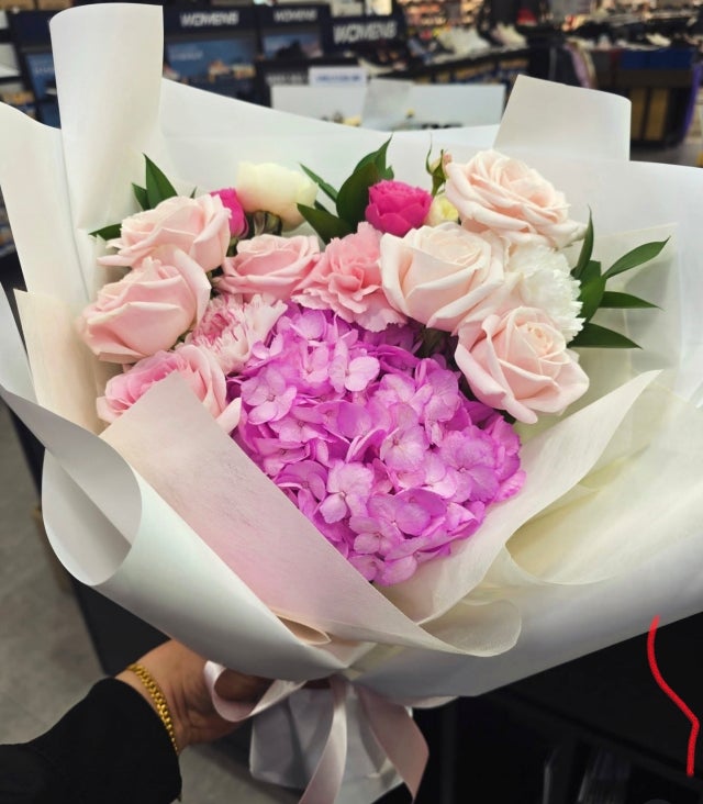 분홍장미계절꽃다발