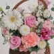 콜롬비아 골든볼, 다알리아, 부바르디아, 라넌큘러스, 수국, 아스틸베, 아이리스, 안개, 카네이션, 카라, 튤립, 레몬잎