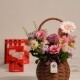핑크 퍼플 꽃바구니+빼빼로 5개