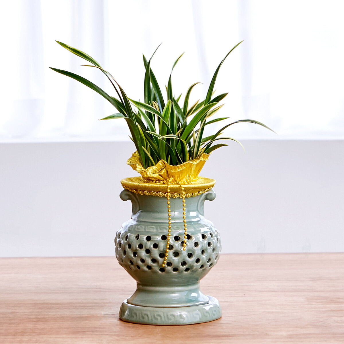 동서양란의 합작품, 고급스러운 청자분과 어우러진 대국