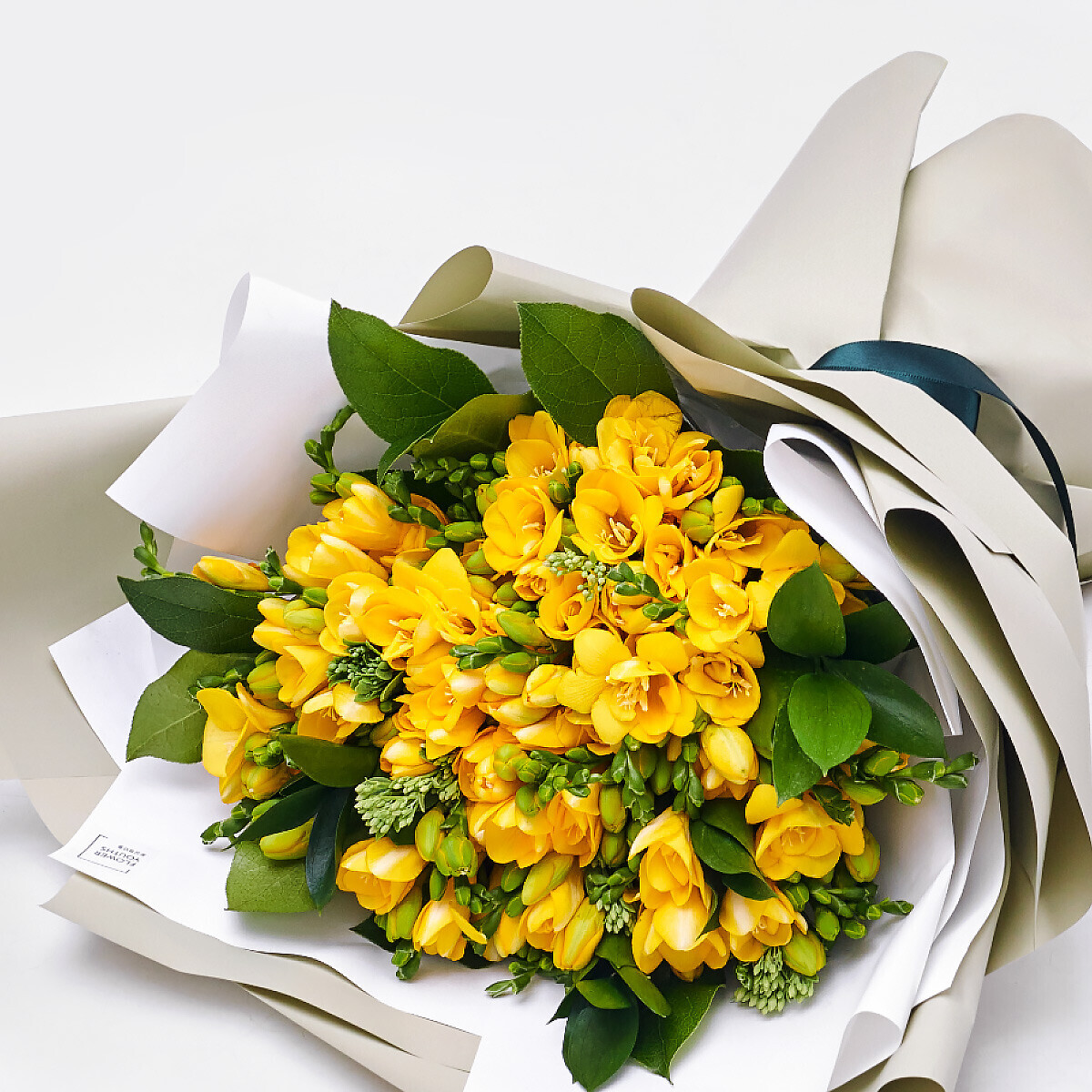 향긋한 봄을 알리는 프리지아로 제작된 노란 빛이 싱그러운 꽃다발입니다.