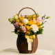 향긋한 봄을 알리는 후리지아와 화사한 계절꽃을 곁들인 꽃바구니입니다.