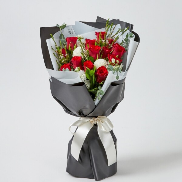 지금 이 순간은 빨간장미와 계절꽃으로 구성된 꽃다발 입니다.