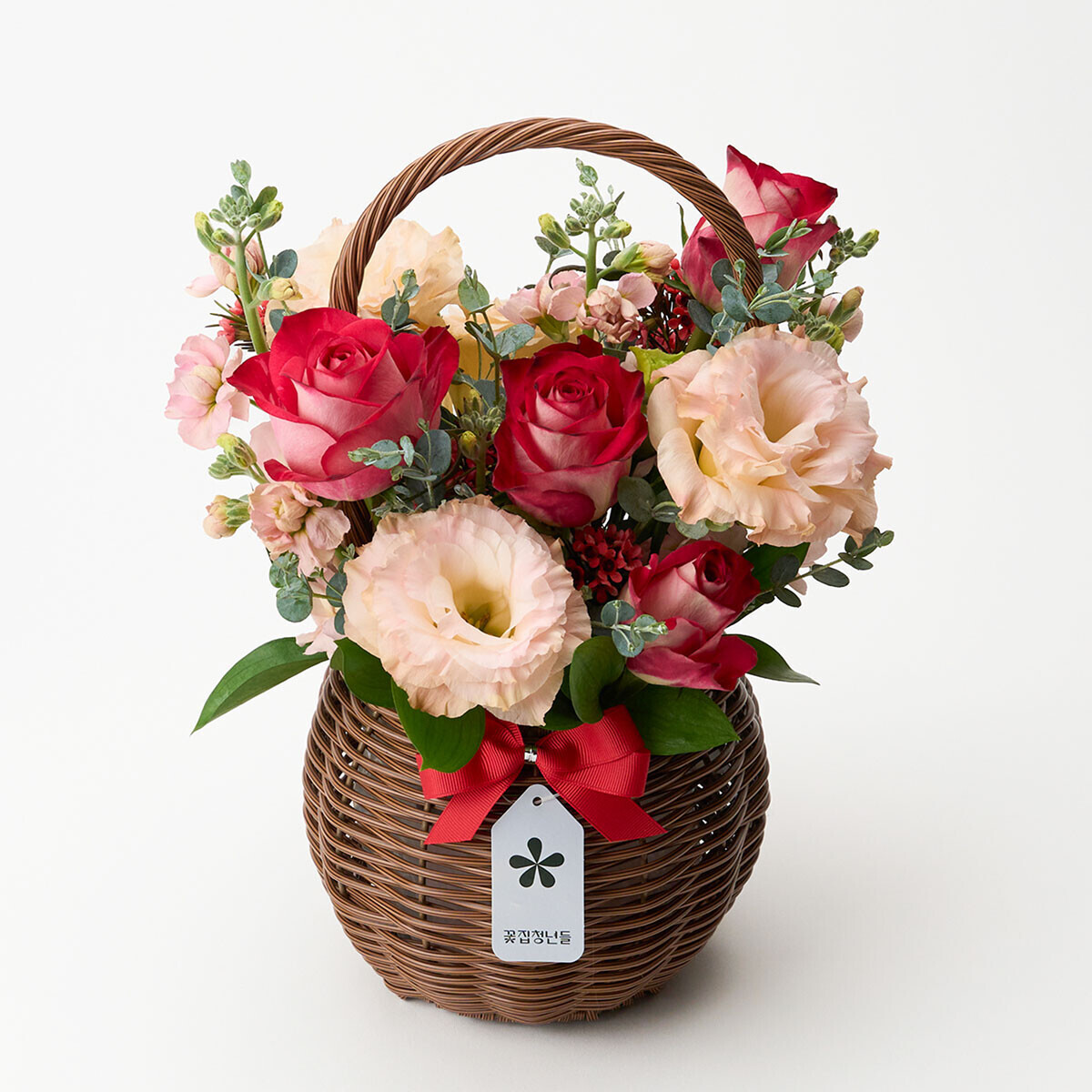 화이트 & 레드 투 톤 장미의 반전 매력을 지닌 꽃바구니입니다.