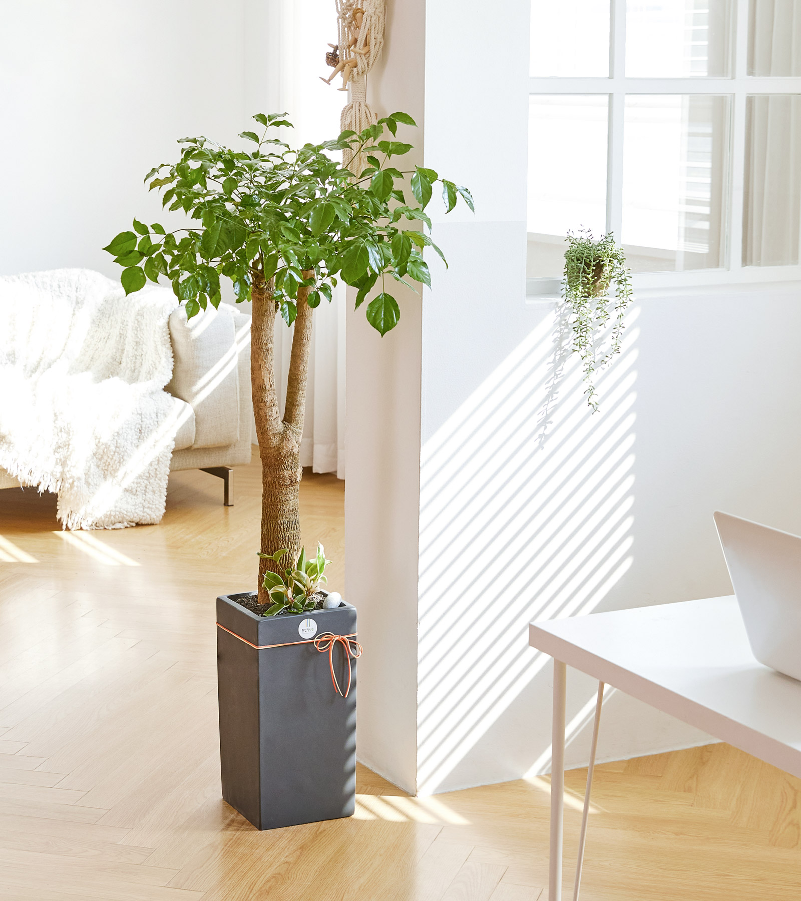 행복을 가져다주는 나무 '해피트리'는 좋은 이름에 '재물, 행복'이라는 꽃말을 가져 집들이, 개업 선물로 꾸준히 사랑받는 식물이에요. 깔끔한 수형과 모던한 분위기를 선사해 인테리어 식물로도 좋아요. 해피트리를 선물해 재물과 행복을 선물하세요.