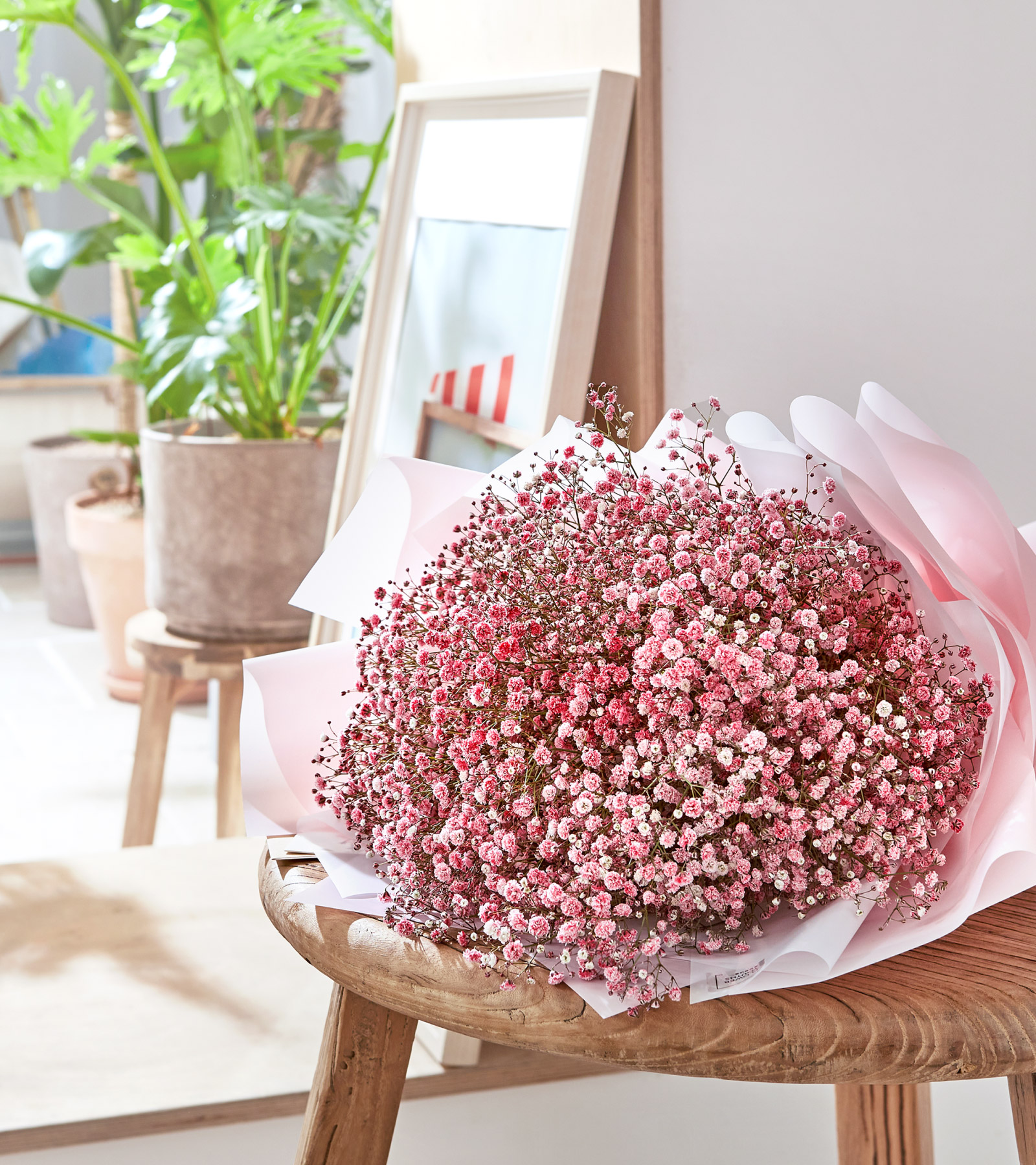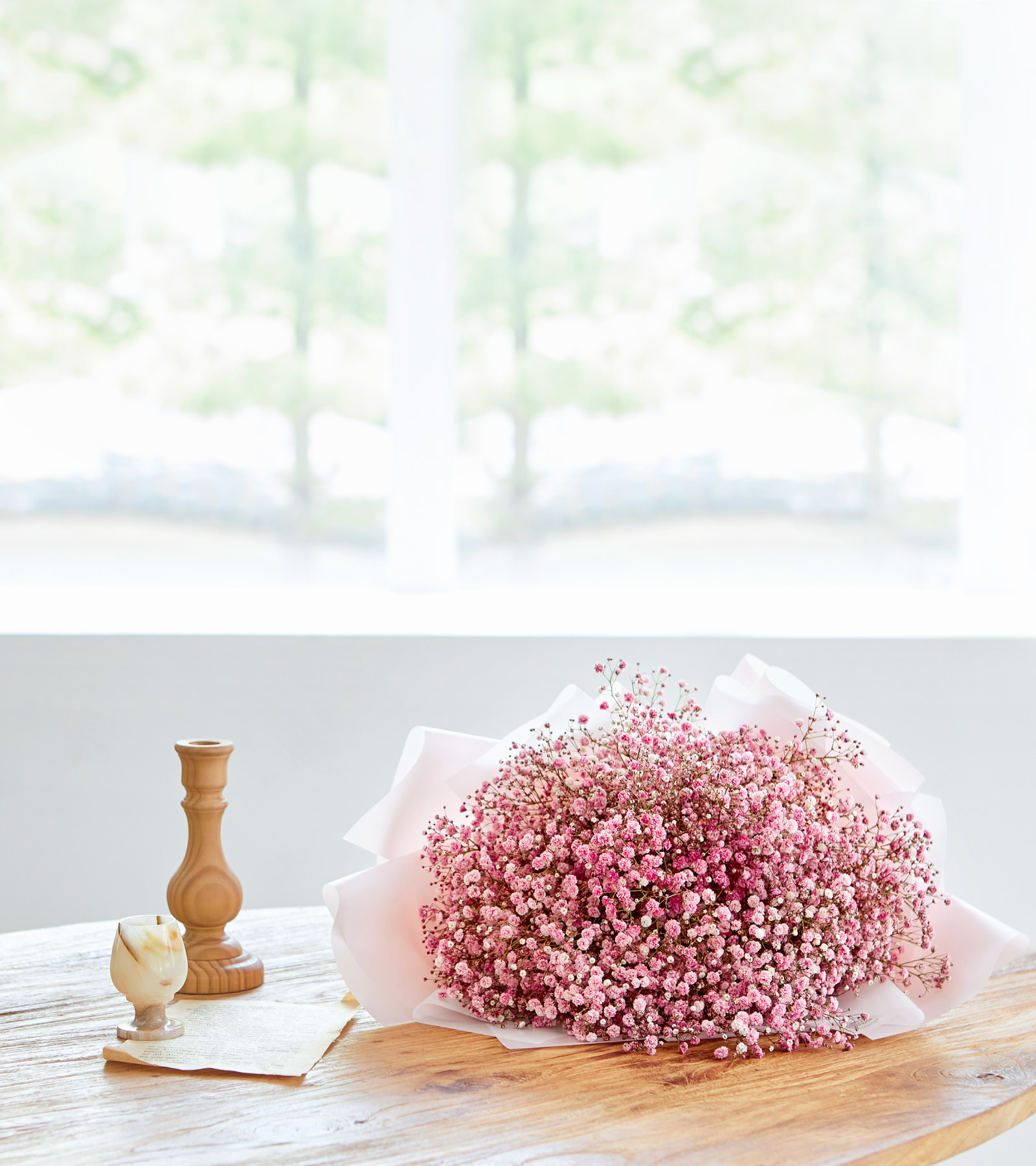 어떤 꽃을 구성하는지도 중요하지만 꽃 그 자체만으로도 존재감이 돋보이는 꽃은 그 자체로도 아름답지요. ‘핑크안개꽃다발’은 핑크 색상의 안개꽃으로 구성된 꽃다발로 일상의 새로운 맑은 마음이 필요할 때에 선물하면 좋아요.